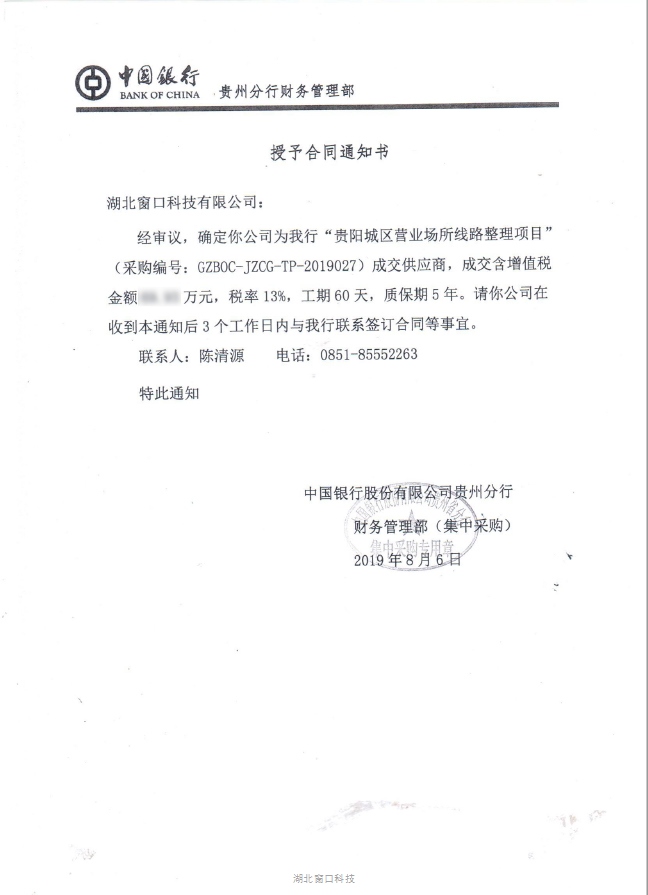 2019年7月,貴陽(yáng)中行開(kāi)始招標(biāo),窗口科技緊跟步伐,追求高質(zhì)量發(fā)展,積極投身項(xiàng)目投標(biāo)準(zhǔn)備工作。經(jīng)過(guò)精心準(zhǔn)備,最終經(jīng)歷開(kāi)標(biāo)、評(píng)標(biāo)、定標(biāo)等審核環(huán)節(jié),成功中標(biāo)。